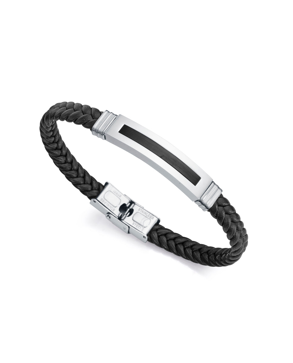 Pulseira em aço Magnum com Ip preto e couro preto