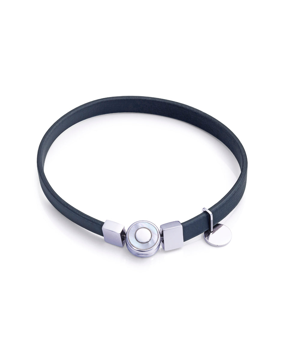 Pulseira ecológica em aço reciclado e Ip dourado com pulseira vegana preta