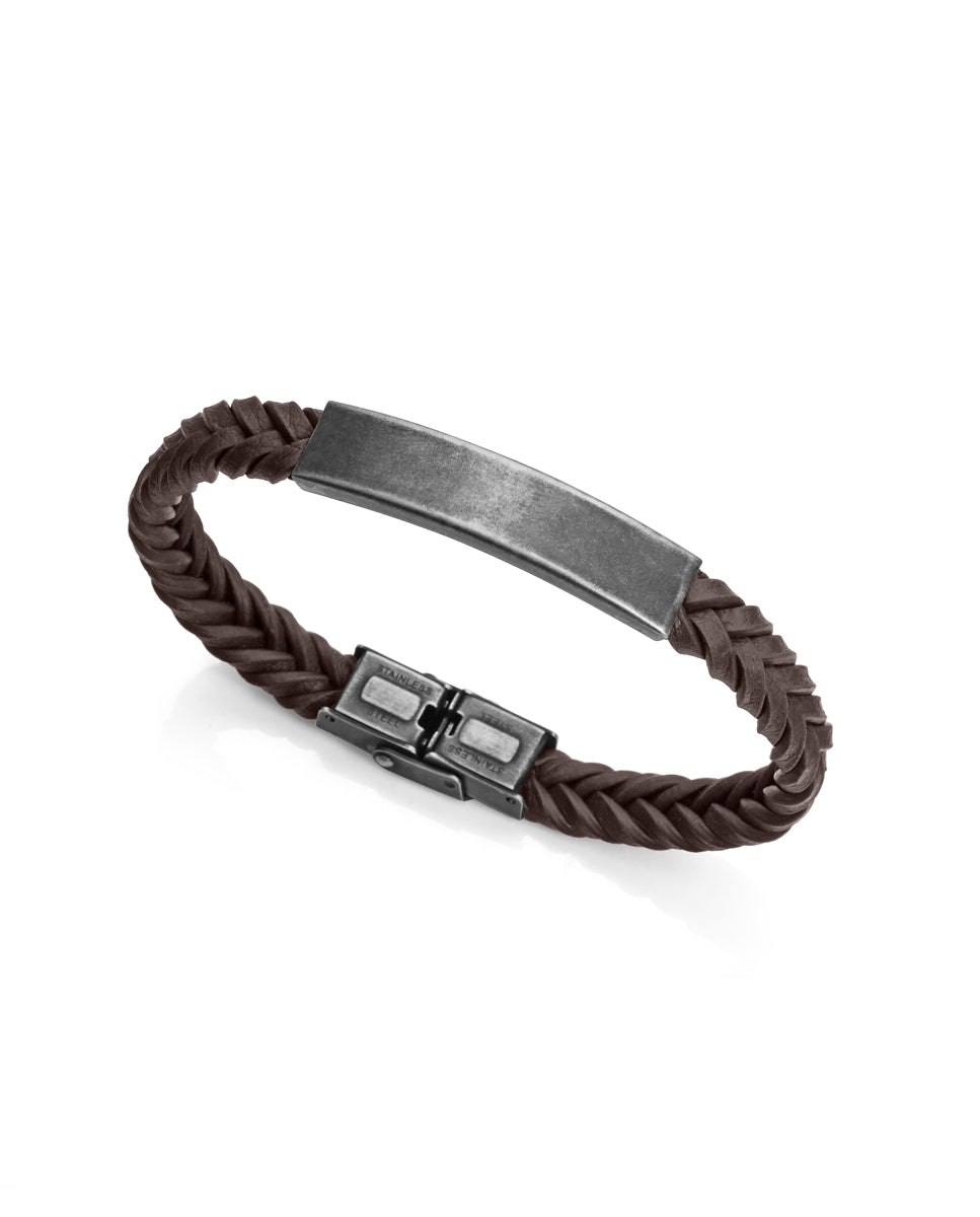 Pulseira masculina Air em aço envelhecido e couro marrom