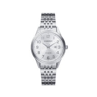 Grande relógio masculino com 3 ponteiros de aço e pulseira de couro marrom