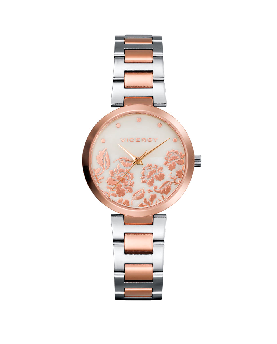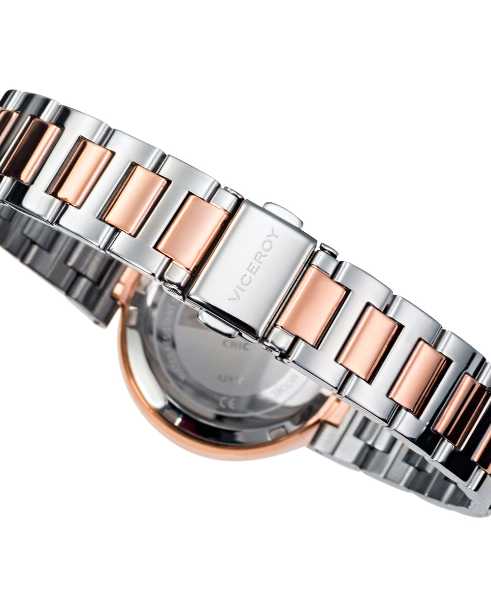 Relógio feminino chique com 3 ponteiros de aço em dois tons com IP rosa